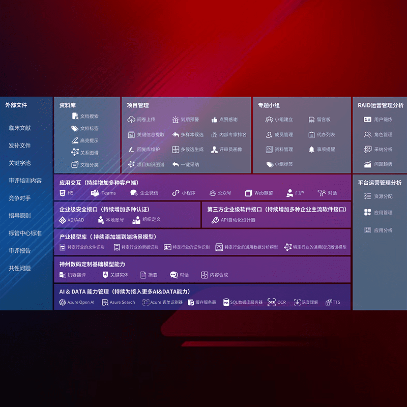 医疗器械产品上市前,,要熟悉严格与繁复评审标准,,,,整理分析监管机构指导文件中的海量信息。。。。企业急需一个智能化解决方案,,,提升知识管理效率,,,,提高评审通过率,,以提升其市场竞争力。。。